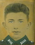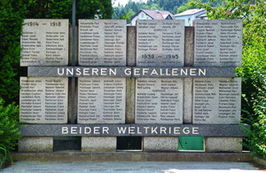 Zusätzlich im Vorraum der Kirche gerahmte Tafel mit Fotos der Gefallenen und Vermissten aus dem 2. Weltkrieg.