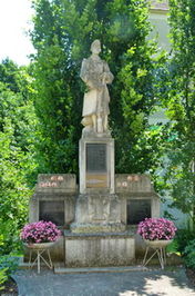Gefallenen aus 2. Weltkrieg am Dorfplatz. Die Fotos die am Denkmal angebracht sind sind leider nicht zuordenbar.
