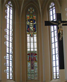 Die Namen der Gefallenen des 1. Weltkrieges aus Sonnefeld und Trübenbachsind im Fenster hinter dem Altar der Klosterkirche verzeichnet.
