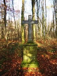 Aus: Dittrich, Max „Deutsche Heldengräber im Reichslande“, Rabenstein 1895 S. 40; gußeisernes Grabkreuz auf Postament