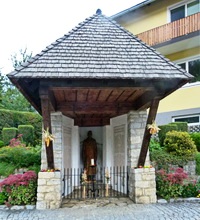Offene Kapelle mit Seitenwänden aus behauenen Natursteinen gefügt und einem pyramidenförmigen Dach gedeckt mit Holzschindeln und getragen von einer Holzkonstruktion am Dorfplatz. In der Nische der Rückwand eine geschnitzte Soldatenstatue und an den Seitenwänden Namenstafeln. Die Vorderfront mit einem niederen schmiedeeisernen Gitter verschlossen.