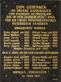 Zum Gedenken an unsere Kameraden vom Bahnhof St. Pölten HBF. die in den Jahren 1938-1945 für ein freies