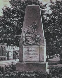 Das Husaren Denkmal für die Gefallenen des 1. Weltkriegs wurde nach 1945 seiner Inschriften und dem Relief beraubt