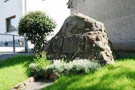 Denkmal aus Natursteinen mit Namenstafel nördlich der Durchgangsstraße (K 131).