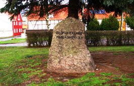 Uthleben (Gedenkstein), Gemeinde Heringen/Helme, Landkreis Nordhausen, ThüringenPLZ 99765 Der Naturstein mit Inschrift steht auf einer kleinen Grünfläche an der Durchgangsstraße