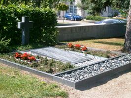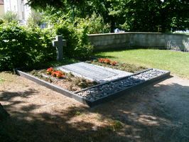 Am Friedhofsrand des Kath.Friedhofs Wittichenau zwei große eingefasste Grabstellen jeweils mit liegender Steinplatte