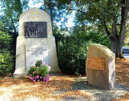 Auf dem Kirchhof der kath. Pfarrkirche steht ein 1908 aus hellen Granitquadern errichtetes Denkmal für die
