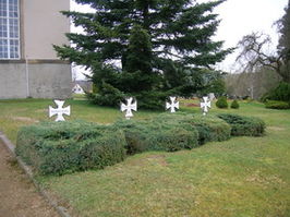 Vor dem Friedhof/Kirche steht das ca. 3 m hohe Denkmal für die Gefallenen des 1. Weltkriegs. Davor ist eine kleine Tafel, die an einen Soldaten in Deutsch-Südwest erinnert. Auf dem Friedhof finden sich vier efeuüberwucherte Einzelgräber (2. Weltkrieg)