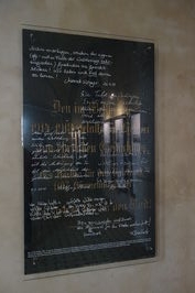 Gedenktafel an der Außenseite der Kirche: „In dieser Kirche predigte und konfirmierte 1932 der Widerstandskämpfer Pastor Dietrich Bonhoeffer, geboren am 4.2.1906, ermordet am 9.4.1945 im KZ Flossenbürg.“