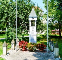 Quadratische Säule geschützt durch pyramidenförmiges Blechdach