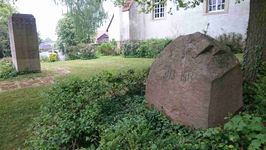 Gedenken auf Steinblock auf Kriegsgräberstätte Rossoschka - Russland