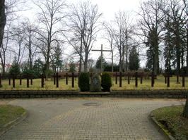 Auf dem neuen Friedhof befinden sich vor einem großen Kreuz zwei Reihen mit braunen Holzkreuzen für Opfer des 2. Weltkriegs. Davor steht ein Widmungsstein. Neben den unten genannten Opfern sind auch 30 unbekannte Soldaten (April 1945) dort begraben.