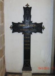 Blankenburg (Harz), Landkreis Harz, Sachsen-AnhaltPLZ 38889 Schwarzes Kreuz mit goldenen Buchstaben und plastischen Verzierungen in der Kirche St. Bartholomäus in Blankenburg/Harz