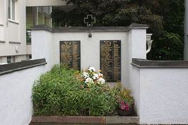 Im Friedhof, in der Josefskapelle zwei Gedenktafeln mit Namen und Fotos an der Wand