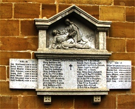 Denkmal an der Kirche: Aus der Gemeinde Burgellern fanden im Weltkriege 1914 - 18 den Heldentod (Namen)