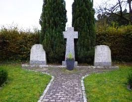 Steinkreuz, daneben zwei Gedenksteine.