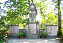 Heubühl und Weiherhaus. Das Denkmal für den 1. Weltkrieg wurde 1922 in einer Grünanlage errichtet.