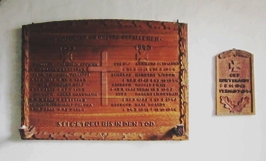 Holztafeln in der evangelischen Rosenkirche St. Marien erinnern an die Gefallenen und Vermissten des 2. Weltkriegs