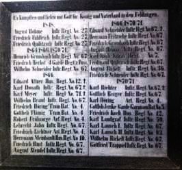 Es kämpften und fielen mit Gott für König und Vaterland in den Feldzügen 1848 (Namen) 1864,1866, 1870/71 (Namen)