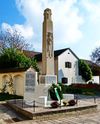 Freistehende Betonsäule neben der Kirche mit dem Relief eines Geschützes am Sockel, zweier Soldatenstatuen auf halber Höhe und gekrönt mit Kreuzen. Daneben Gedenktafeln und eingefriedet mit Ketten.