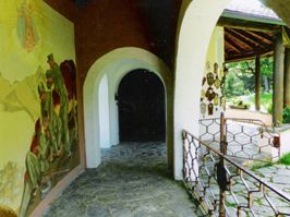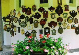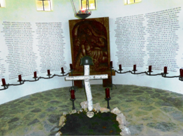 Inneren eine große hölzerne Pietà zu deren beiden Seiten an der Wand die Namen und Daten
