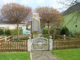 Die kleine gepflegte Anlage steht an der Hauptstraße. Das Denkmal ist ca. 2,5 m hoch. An der Vorderfläche befindet sich eine Tafel mit den Gefallenennamen des 1. Weltkriegs, beidseits seitlich die Namen der Gefallenen des 2. Weltkriegs.