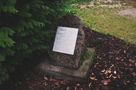 Am Ziegelwaldsee, beim Angler-Vereinshaus steht eine runde Säule mit Bildnis und Inschrift, daneben, durch eine Hecke getrennt, liegt ein Stein am Boden mit Tafel.