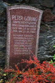 Zu 4. Peter Göring; Unteroffizier der 1. Grenzbrigade (B) geb. 28.12.1940 Erm. am 23.5.1962 Er wurde von Westberliner Polizisten hinterhältig erschossen, als er treu seine Pflicht zum Schutze der Staatsgrenze in Berlin erfüllte.
