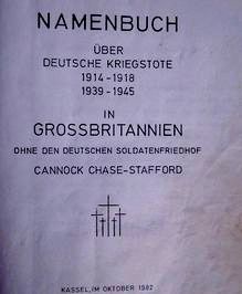 Das Namenbuch liegt in der Kriegsgräberstätte Cannock Chase aus und wurde 1982 gedruckt. Es enthält teilweise Namen