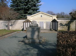 Steinquader: Die Gemeinde Hainewalde ihren im Weltkrieg 1914-1918 gefallenen Söhnen zum ehrenden Gedenken Vergiss die treuen Toten nicht Joh 15,13; An der Friedhofsmauer: Für uns
