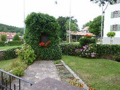 In die von Efeu umrankte Außenmauer ist eine weitere Gedenktafel eingefügt.