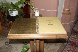 In der Stadtkirche: Gedenkbuch für den 2. Weltkrieg auf einem Podest.