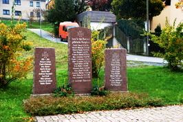 An der Unteren Dorfstraße steht das Denkmal bestehend aus drei braunen Steinen.