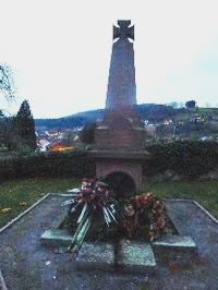 Kriegerdenkmal aus Sandstein mit krönendem Tatzenkreuz