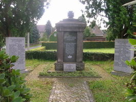 An der Hauptstraße steht das Denkmal. Mittig ein Steinquader mit Widmungs- und Namenstafeln (1. Weltkrieg), beidseits davon jeweils ein ca. 1,5 m hoher heller Stein für die Gefallenen des 2.Weltkriegs.