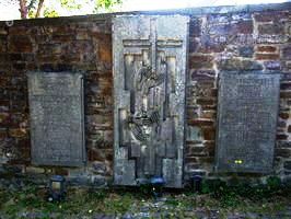Höfchen, Stadt Hermeskeil, Landkreis Trier-Saarburg, Rheinland-PfalzPLZ 54411 An der Friedhofsmauer, nördlich der Kapelle, drei Granittafeln, linke u. rechte Tafel mit Daten, mittlere Tafel stilisiertes Kreuz mit stilisierten Händen, keine Widmung