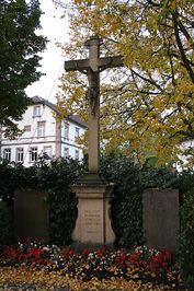 Bei der Kirche ein Hochkreuz mit Heiland, am Sockel Inschrift, flankiert von je einer Namenstafel; zusätzlich Hinweise zu Soldaten von privaten Gedenksteinen
