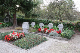 Hugstetten (Friedhof: Soldatengräber), Gemeinde March, Landkreis Breisgau-Hochschwarzwald, Baden-WürttembergPLZ 79232 Im Friedhof; Soldatengräber versehen mit Steinkreuzen