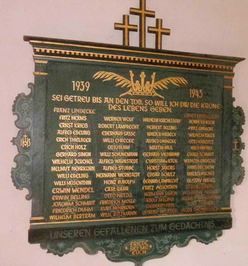 Tafel 2. Weltkrieg: 1939-1945 Sei getreu bis an den Tod, so will ich dir die Krone des Lebens geben. (Namen)