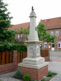 In Jävenitz ein Obelisk für die Gefallenen der Kriege 1866 und 1870/71 auf gestuftem Sockel, auf der Spitze ein