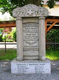 Jauer, Gemeinde Panschwitz-Kuckau, Landkreis Bautzen, SachsenPLZ 01920 In Ortsmitte steht das Denkmal aus hellem Stein. Die Namen und Inschriften des 1. Weltkriegs flankieren zwei Säulen. Auf dem Sockel stehen die Gefallenen des 2. Weltkriegs. Alle Inschriften sind in Sorbisch, auch die Namen sind in sorbischer Schreibweise.