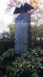 Adler mit Kaiserkrone Unten zusätzlich angebrachte Plakette für die Opfer des 2. Weltkriegs Vor dem Denkmal