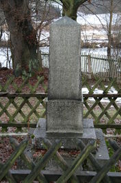 Stele an der Südseite der Dorfstraße im Ort. Inschriften und Namen sind kaum noch lesbar.