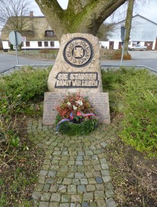 Denkmal vor einer alten Eiche an der Hauptstraße (Einfahrt Leedamm) mit zwei davor gestellten steinernen Namenstafeln