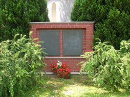 Auf dem Kirchhof in Klix steht eine gemauerte Ziegelwand, an der sich zwei Namensplatten für die Opfer der Endkämpfe des 2. Weltkriegs befinden