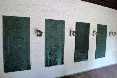 Gedenkhalle gebaut. In dieser befinden sich vier Namenstafeln (mit Namen, Geb.- u. Todesjahr). Im Vorraum der