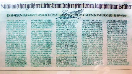 Kirche liegen in einer Vitrine Listen mit Namen der Gefallenen des 2. Weltkrieges der Kirchspielorte (Geb.-Ort,
