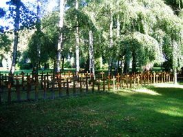 Auf dem evangelischen Friedhof befindet sich eine Kriegsgräberstätte. Die Gefallenennamen sind auf Holzkreuzen eingebracht. Es handelt sich um die Opfer der Endkämpfe.