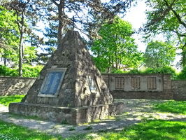 Auf einem Sockel ruhende abgestumpfte Pyramide aus Sandsteinblöcken hinter der Kirche. Sie verfügt über vier Inschriftentafeln aus Granit, in denen Inschriften und die Namen der im 1. Weltkrieg Gefallenen eingemeißelt sind und wird von einem einfachen Eisenkreuz bekrönt. Im Hintergrund der Pyramide sind an der Umfassungsmauer seit 1958 Granittafeln mit den Gefallenen des 2. Weltkriegs angebracht.de.wikipedia.org/wiki/Liste_der_denkmalgeschützten_Objekte_in_Langenzersdorf