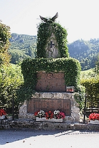 An der Kreuzung am Gerdrau/Kräuterbach; gemauertes Denkmal, oben mit Adler, vorne Gedenktafeln; zusätzlich Hinweise zu Soldaten von privaten Gedenksteinen.